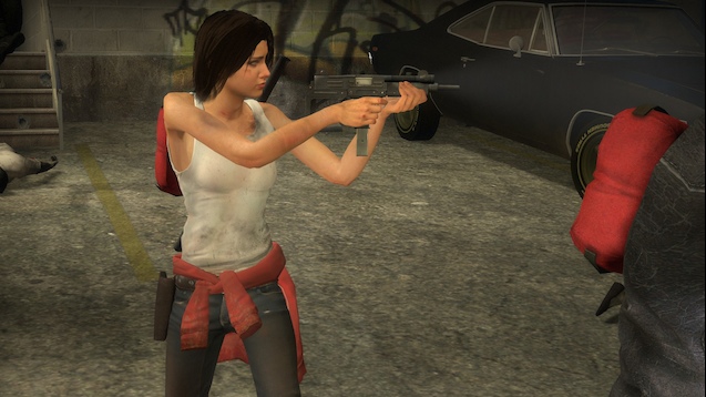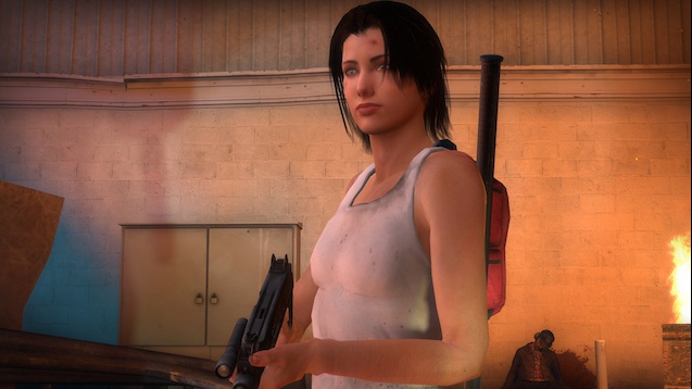 From the tag team of Porky-Da-Corgi and myself, its Zoey! Sans jacket and ponytail! Dressed up to resemble her appearance in the promotional comics of Left 4 Dead 2's The Sacrifice update, in her backstory before the long perilous, Night at the Roxbury-esque journey across the eastern United States with Patten's twice removed cousin, Shaun of the Chocolate and that one guy from the Village People. Travel lightly, carry a machine gun, and keep bandages for the feet in stock, its time for the adventure!